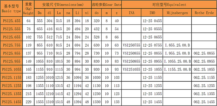 洛陽普瑞森精密軸承(PRS)為用戶提供PSI系列內齒型回轉支承。PSI25系列帶有內齒,有良好的承載力以及便于安裝等點,歡迎選購。同時,我們也可以根據客戶自己的需要重新設計,我們經驗豐富,產品系列齊,完可以滿足用戶對標準和非標準軸承的需要,歡迎新老客戶前來訂購。