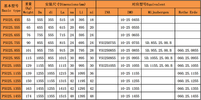 洛陽普瑞森精密軸承(PRS)為用戶提供PSU25系列無齒型回轉支承。PSU25系列有良好的承載力以及便于安裝等點,歡迎選購。同時,我們也可以根據客戶自己的需要重新設計,我們經驗豐富,產品系列齊,完可以滿足用戶對標準和非標準軸承的需要,歡迎新老客戶前來訂購。