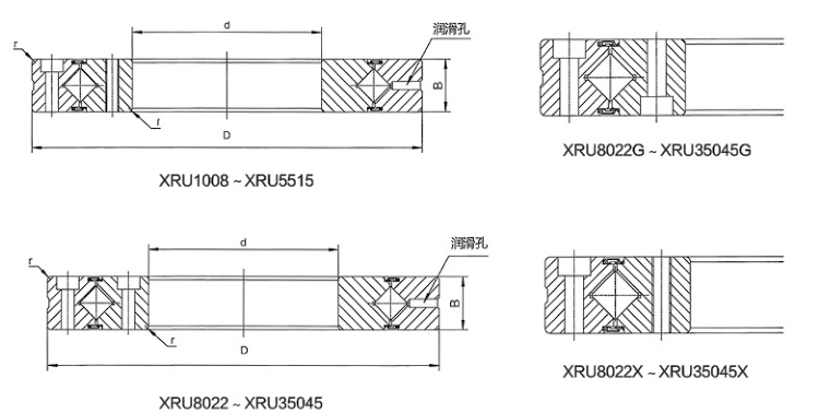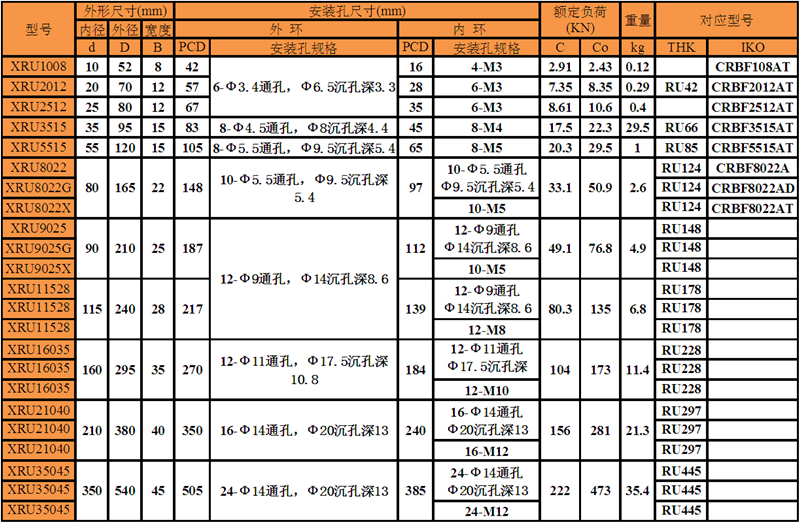 洛陽(yáng)普瑞森XRU系列(安裝孔、高剛性)交叉滾子軸承可替代THK公司RU系列;IKO公司CRBF系列,普瑞森XRU系列高剛性交叉滾子軸承由于內(nèi)外環(huán)都采用整體結(jié)構(gòu),具有高剛性,并且?guī)в邪惭b孔,安裝時(shí)不需要固定法蘭和軸承座,很大程度簡(jiǎn)化安裝程序,并且不影響安裝精度,具有較高的旋轉(zhuǎn)精度和較大的扭矩,同時(shí)也可以根據(jù)精度要求自由選擇內(nèi)圈或者外圈旋轉(zhuǎn)的方式,具有較大的選擇自由度。